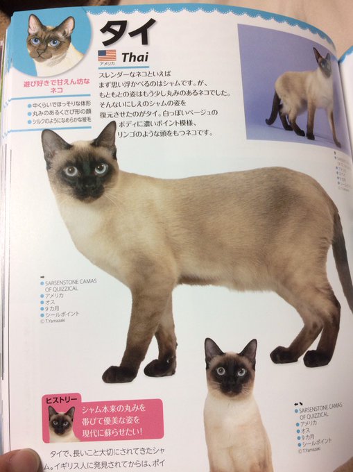 古来よりタイには3種のネコ シィ サワット コラットの原型 スパラック バーミーズの原型 そしてシャムが存在していた 中でもシャムは 王室 や貴族 寺院など 高貴な血筋の家系でのみ飼うことが許されるなど非常に尊い扱いをうけてきた.