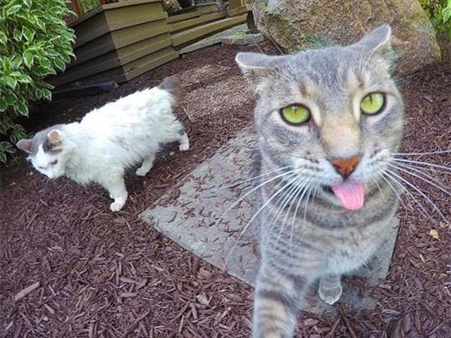 遇到一只吐舌头卖萌的小猫 走近才发现小猫
