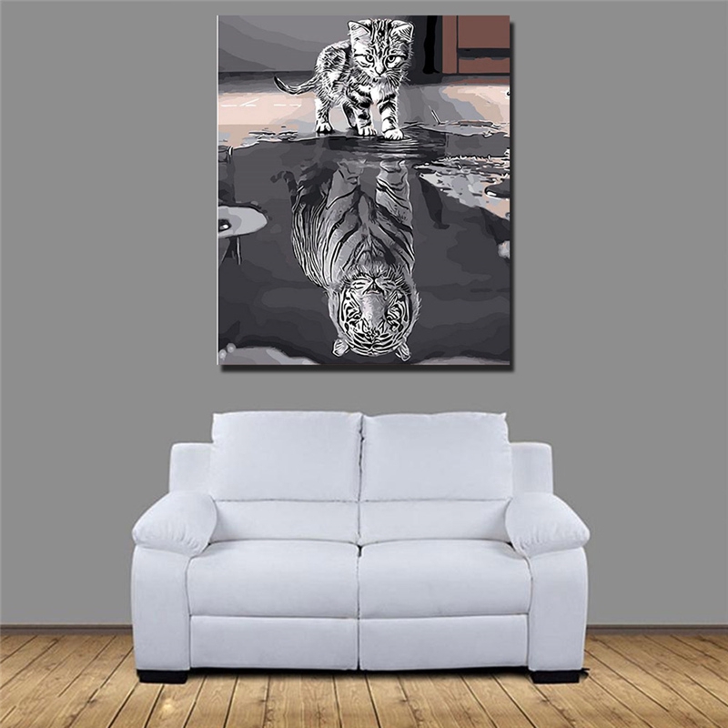 Won 貓倒影虎半diy數字繪畫的數字套件裝飾畫 蝦皮購物