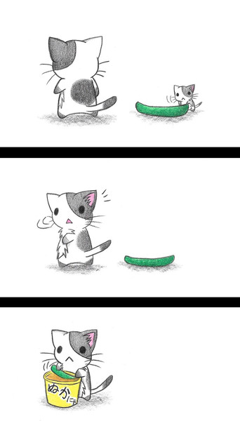 ササキイラスト制作所 On Twitter きゅうりにびっくりする猫を描いて