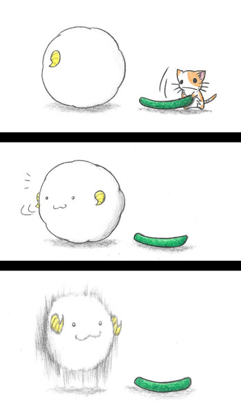 きゅうり見てとびあがる猫みたいな感じで ブリテッリのイラスト