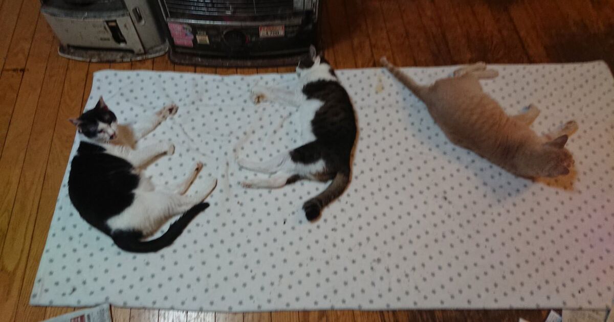追記あり うちの子 うちの子 知らない野良 ストーブに猫さんが集合