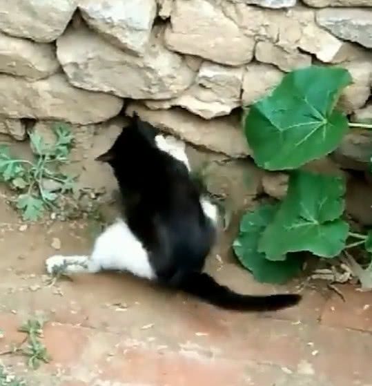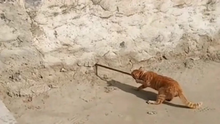 这猫是把蛇当成鱼了吗 咬着尾巴就是不放 把蛇吓得也不敢出来