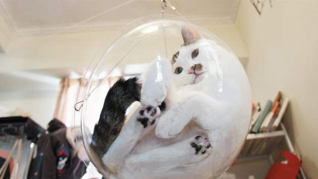 任偉成blog 動物 貓咪透明泡泡椅可以360度全方位欣賞貓老大的軟q姿態