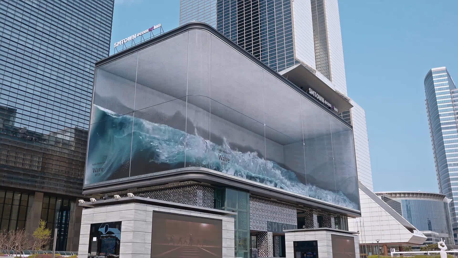 一缸巨大的 海浪 最近出现在位于首尔江南世界贸易中心的